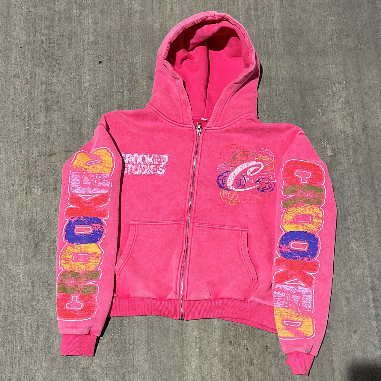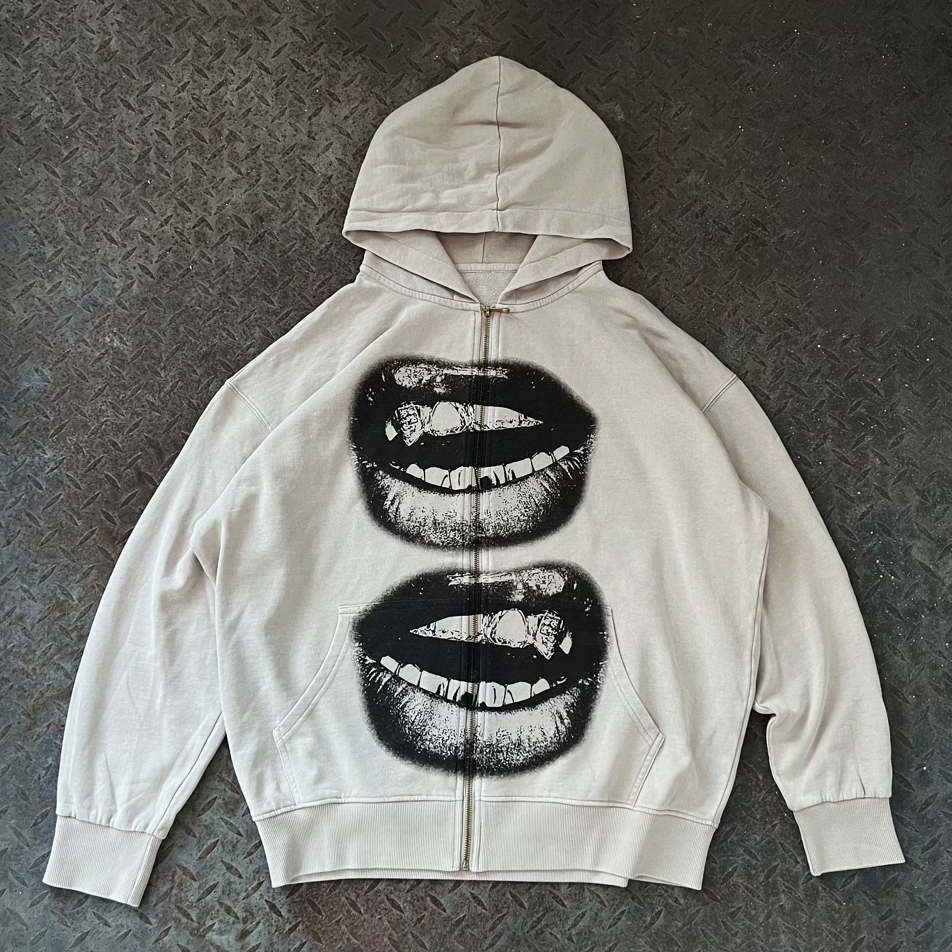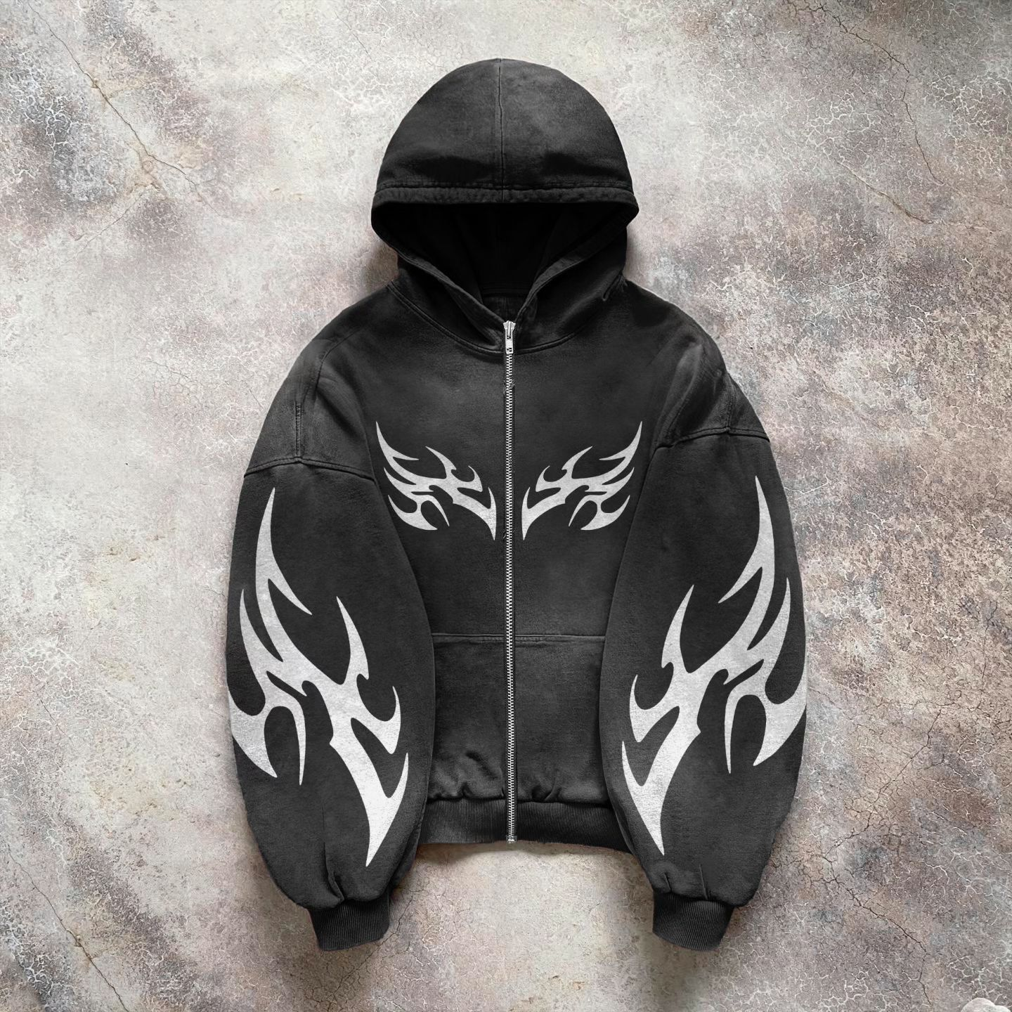 Save $32.00Vintage distressed print zip-up hoodie$5.00 USD $37.00 USD -