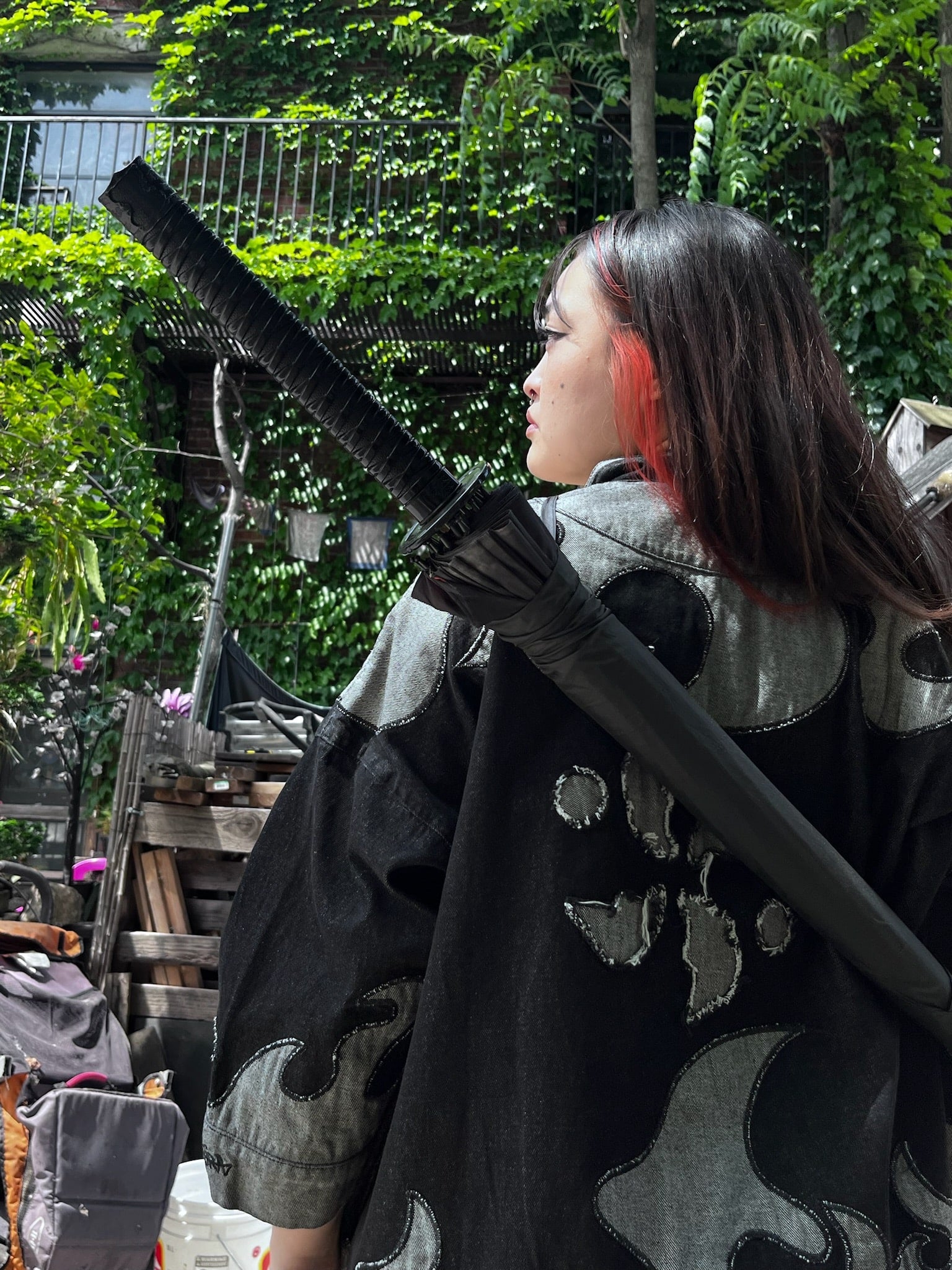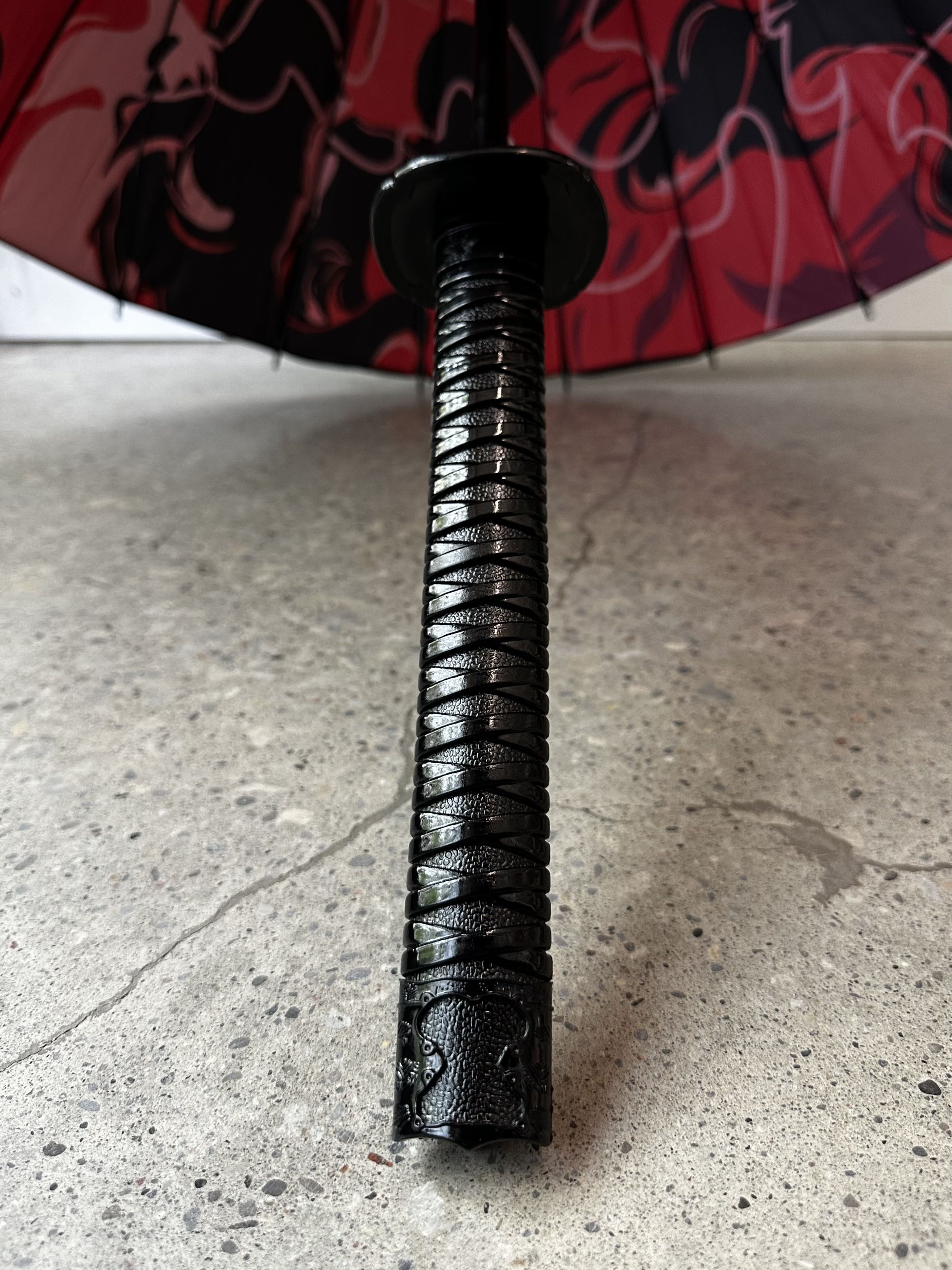 This is the umbrella with the katana's handle. Made to be used daily, very steady, and withstand strong wind. Comes with a cover and can be carried on the back using a sling.