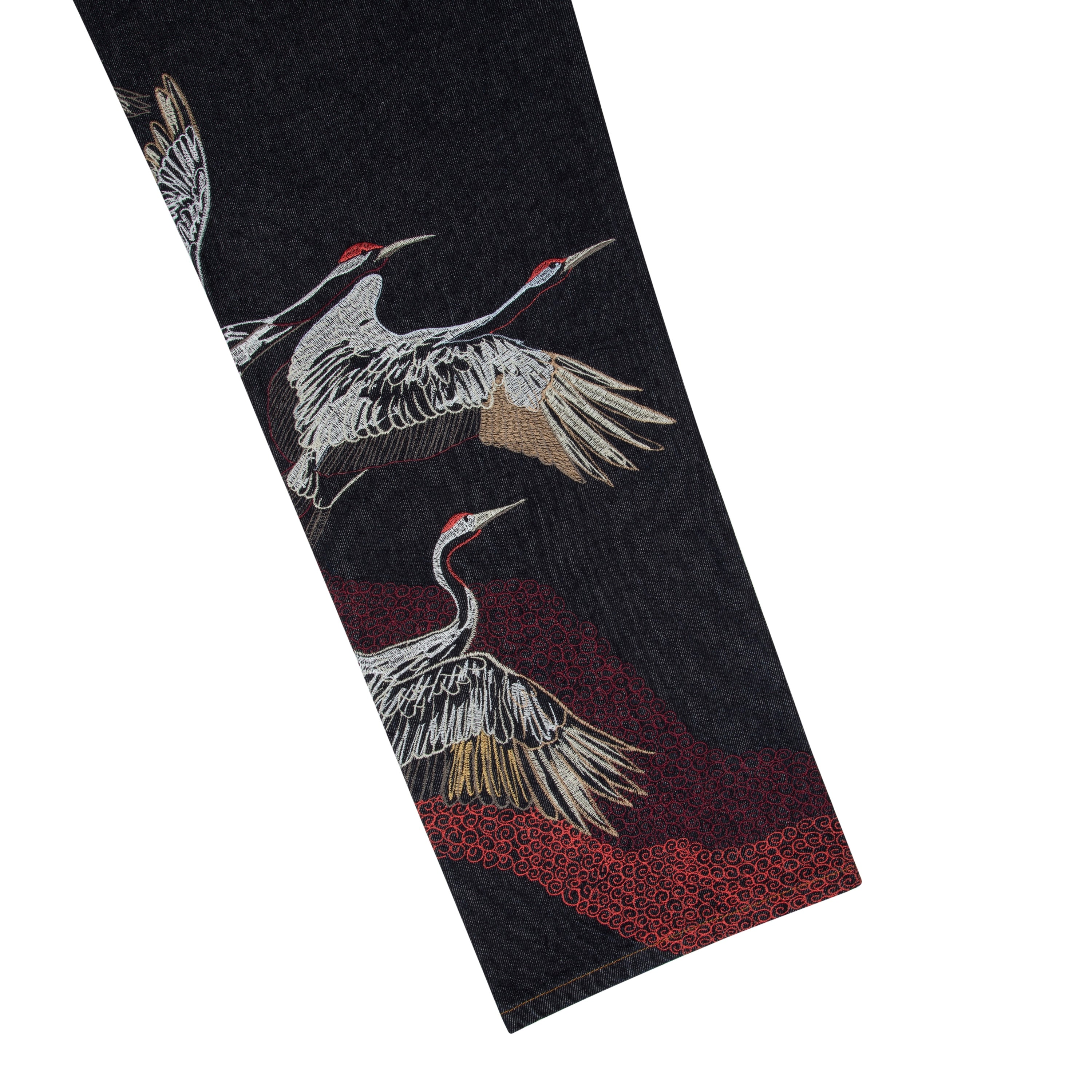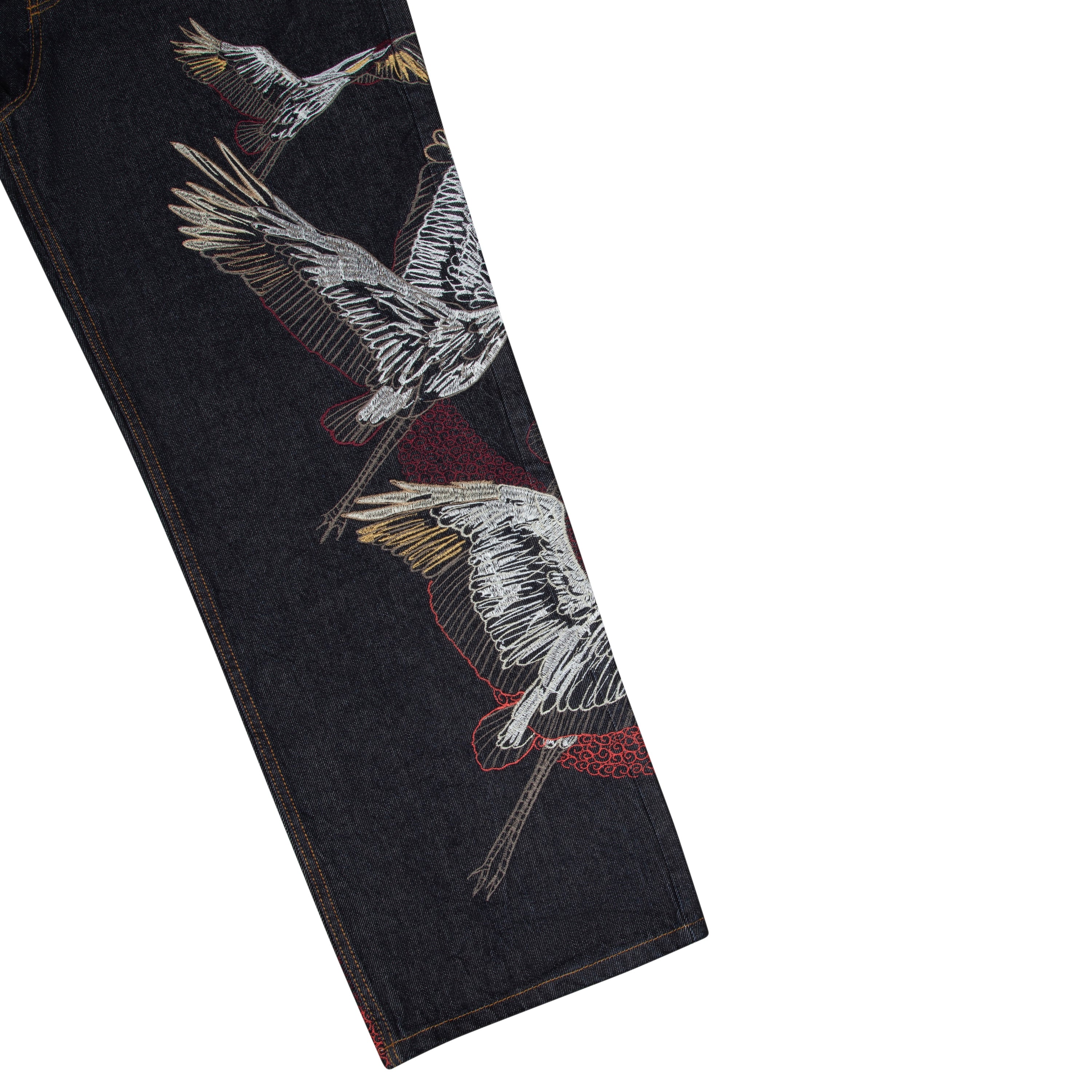 14,5oz denim / 100% cotton / embroidery on front and back / embroidered leather patch / wash inside out / straight fit / fits true to size